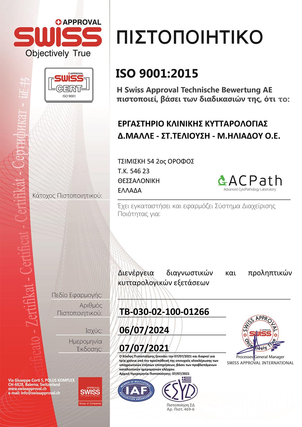 Το εργαστήριο Κλινικής Κυτταρολογίας ACPath διευθύνεται από επιστήμονες υψηλού κύρους, με πολυετή νοσοκομειακή εμπειρία, τις ιατρούς Κυτταρολόγους Δρ. Δέσποινα Μαλλέ, τ. Επιμελήτρια Α’, Σταματία Τελιούση, τ. Διευθύντρια Κυτταρολογικού Εργαστηρίου, του Γ.Ν. Θεσσαλονίκης «Γ. Παπανικολάου» και από την Μαρία Ηλιάδου, υπ. Διδάκτωρ Ιατρικής Σχολής ΑΠΘ.